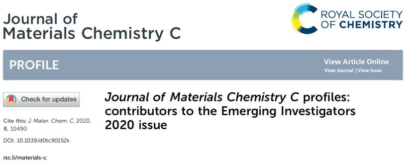 近日,bw必威西汉姆联官方网站材料科学与工程学院特聘教授李鹏程博士被遴选为英国皇家化学学会旗下Journalof Materials Chemistry C(JMCC)杂志2020年度EmergingInvestigator,并在JMCC 2020 Emerging Investigator专刊上发表学术论文,该专刊主要收集光学、磁性和电子器件材料领域的材料化学家在其独立开展研究工作的早期所发表的部分高水平研究工作,入选的每一名新锐科学家课题组的贡献均有可能影响材料化学的未来发展方向。