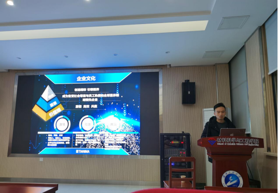 为促进同学更好的适应大学生活,为未来生活做更好的打算,陈郁勃以学长的身份从如何过好大学生活、毕业分界点的选择、天马的工作经历三个方面做了介绍和宣讲。重点为同学们解答了学习和工作上的困惑,在人生道路的分界点上应该如何抉择,介绍了天马微电子公司以及招聘人才所需要的具备的技能,未来时代发展的走向等等。