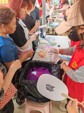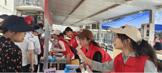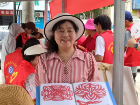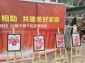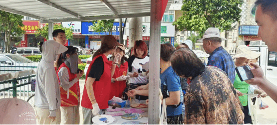 义卖淀粉肠和剪纸艺术同样受到了居民的普遍认可和热情回应。社区居民们都愿意为公益事业捐献自己的绵薄之力,还有学员展示自己心灵手巧的剪纸作品,最后,志愿者团队一起为社区保洁人员等基层工作者们送上礼物和祝福,表达对他们的尊敬与肯定。