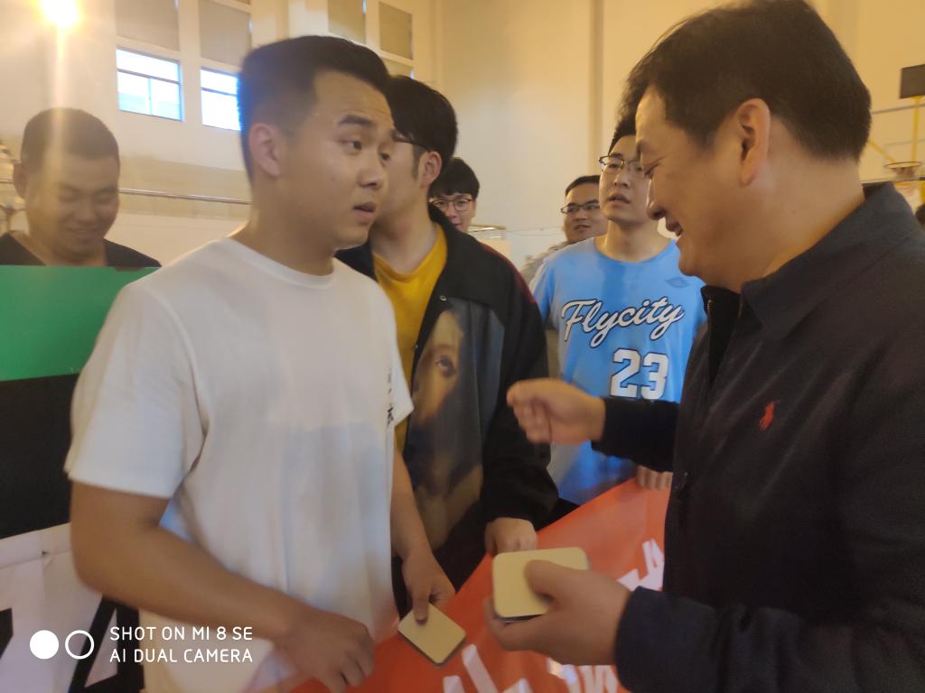 随着学院党委常务副书记李国林抛球争抢,比赛拉开帷幕。比赛双方本着“友谊第一,比赛第二”原则,展开了激烈的角逐。毕业生队快攻迅速,走位灵活;教职工队则凭借丰富的经验和默契的配合,与学生们势均力敌。老师们没有了平时工作时的严肃,激情四溢地展开了一轮轮的进攻、防守,动作帅气利落。同学们也毫不示弱的奋力拼搏,将热情和球技展现的淋漓尽致。场上比分交替领先,战况十分精彩,引来观众阵阵呐喊和掌声。整场比赛虽然充斥着紧张的竞争氛围,却也在师生间的竞技互动中洋溢着轻松愉悦的温情气氛。比赛将近尾声,结果已然不重要,师生亲切交谈,共同合影留恋,李书记给毕业生们送上精美的纪念品。