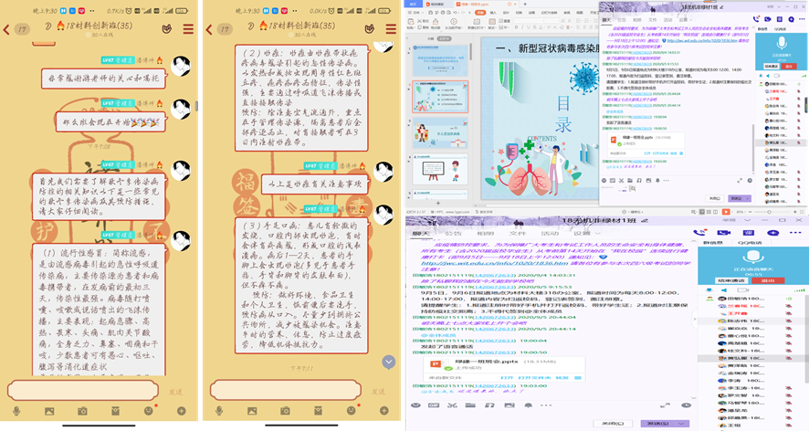 2018级以视频会议、QQ会话等线上渠道开展了新型冠状病毒感染肺炎预防知识、培养节约习惯暨安全教育主题班会。各班从新冠病毒肺炎的知识,包括传播途径等进行了深入学习,并就如何做好个人防护展开了讨论和交流,班主任提醒同学们搞好宿舍环境卫生、做好个人防护、避免到人群聚集的地方扎堆、聚集。告知同学们发热就诊流程。同时,组织同学们从国家农业现状、粮食产量等角度阐述了节约粮食的重要性,提醒大家要养成节约的好习惯、节约粮食、节约用水、节约资源等。