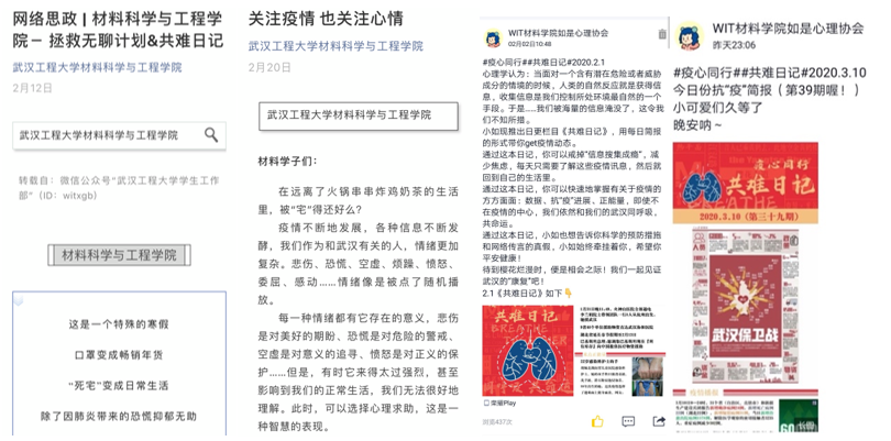 从疫情开始初期,他们一方面参与疫情防控、线上课程学习等活动,另一方面在学院如是心理工作室史梦璐老师指导下,开展疫情下心理健康调查、定期推出抗疫“线上学习”与“情绪调适”等推文、开展“拯救无聊计划”、组织策划协调心理健康教育月系列活动……这群刚进入学校一年或者两年的学生心理健康教育骨干是撑起了这场活动平稳运行的支架。作为学校心理健康教育月重要的承办单位之一,材料学院多次获得优秀组织单位等荣誉。而这些成绩都要归功于学院在不断探索中形成的心理育人“123”工作体系。