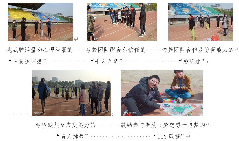2019年3月的运动场上,材料学院的新生们在阳光下、春风里和笑声中开展了一次别样的心理健康户外素质拓展活动。通过“七彩连环爆”挑战参赛同学的肺活量与心理极限;通过“十人九足”考验团队成员间的配合与信任;通过“袋鼠跳”培养团队合作能力与协调能力;通过“盲人排号”考验团队的默契与应变能力;通过“DIY风筝”鼓励学生们勇敢追梦。这场以“青春多‘材’,梦想有‘料’”为名的素质拓展利用丰富多彩的系列活动培养学生们乐观的心态和坚强的意志,帮助他们拥抱快乐、传递快乐。