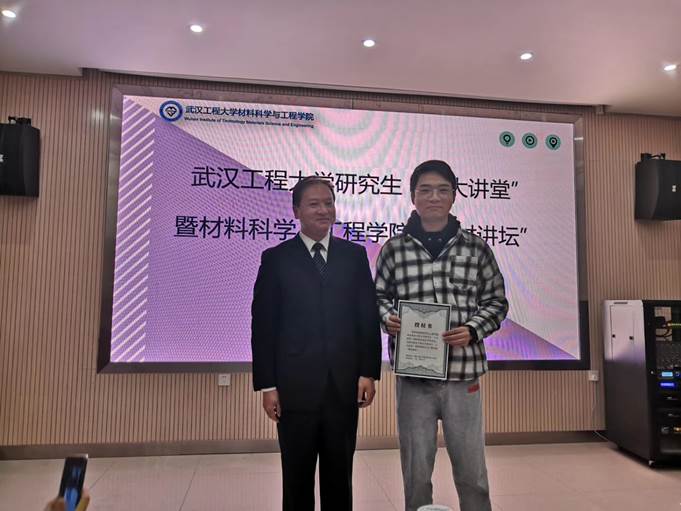 (通讯员 张义强)10月29日晚,材料科学与工程学院在学院A326举行了武汉工程大学研究生“工大讲堂”暨材料科学与工程学院“菁材讲坛”开幕式及讲坛第一期学术活动。校研工部副部长陈俊、学院副院长姚军龙、学院党委副书记张琼、高材教研室游峰、无机非教研室戴武斌、校研工部郑新霞、学院学工办张义强和60多位研究生参与了此次活动。活动由2020级研究生材料一班刘天一同学主持。