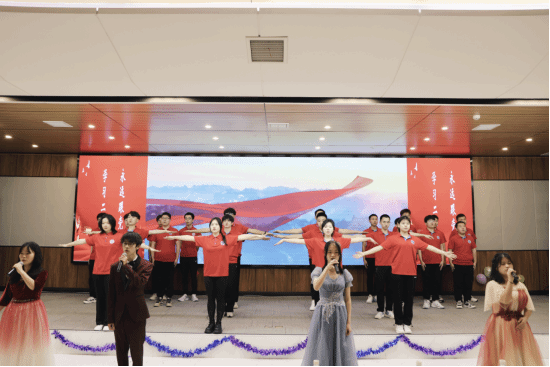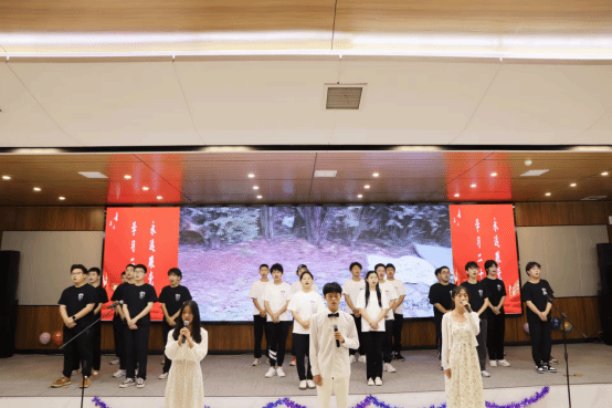本次青春歌会分为“薪火相传 逐光追梦”“青春无限 踏歌远航”“踔厉奋发 勇毅前行”三个篇章,由2022级本科生共同演绎了包含朗诵、话剧、小品、舞蹈、合唱等形式多样的节目14项,带领现场观众重温光辉党史、讲述奋斗故事、聆听殷切寄语,感悟青年力量。
