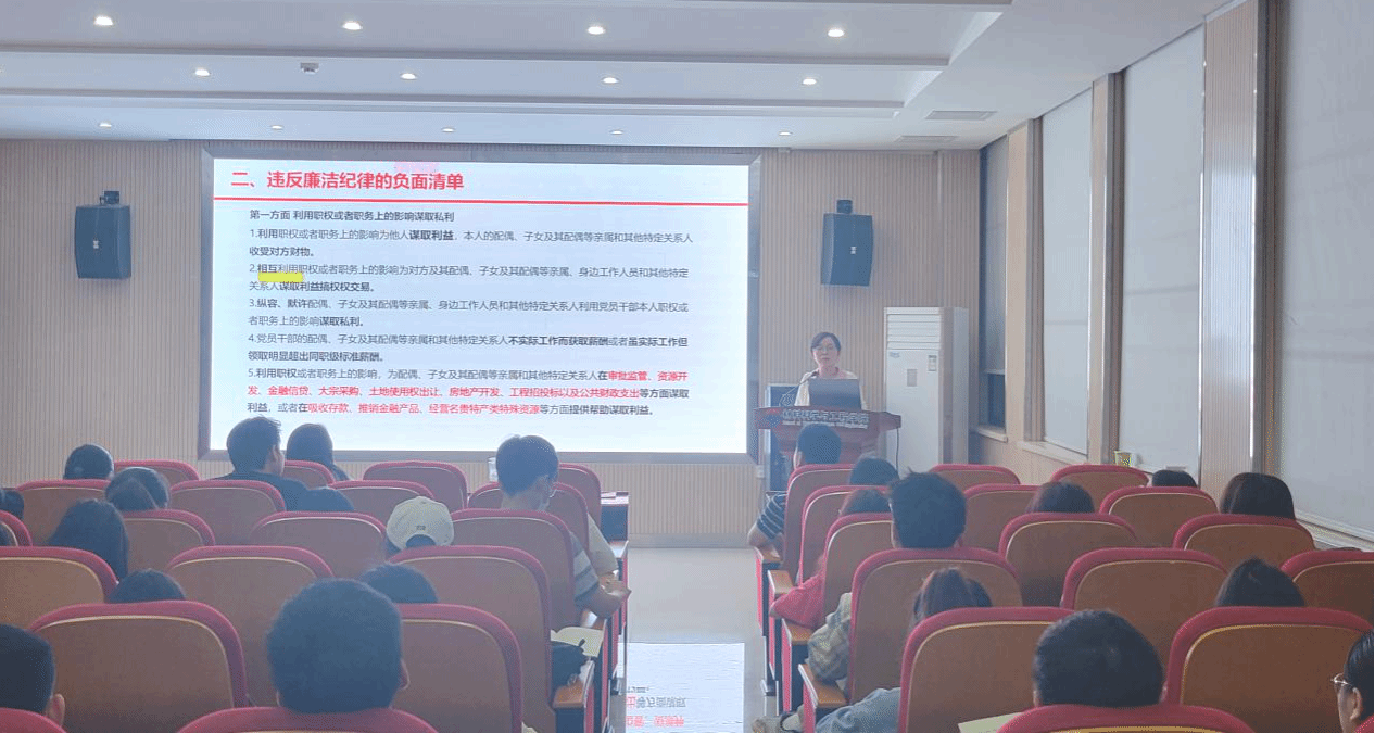 本次党纪学习教育纪律专题党课分别围绕廉洁纪律、工作纪律和生活纪律展开。党委副书记张琼在廉洁纪律党课上,通过梳理廉洁纪律负面清单的方式给师生党员讲授遵守廉洁纪律的重要性和必要性,并告诫师生党员要慎言慎行、慎独慎微、慎始慎终,始终保持党员清正廉洁的形象和作风。