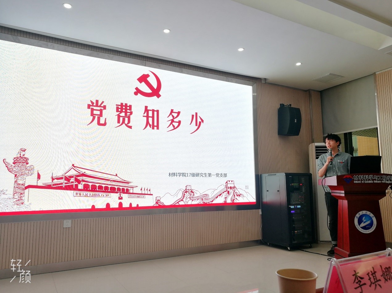 主持人唐婉淇、刘耀东宣读了比赛规则并宣布比赛开始。比赛中,13个学生党支部书记紧扣“青春向党建新功 牢记使命勇担当”这一主题,围绕学习党章党规党纪和监察法自拟标题,以小见大,见微知著,用小选题讲清大道理,用身边事讲实硬道理。其中,2017级研究生一班党支部羿庄城带来以《党费知多少》为题的宣讲,他通过现场互动活跃了气氛,以轻松幽默的语言带领同学们了解党费的有关知识,并强调党费是一面镜子,可以照见党员内心的忠诚、信念、使命和担当。材料物理学生党支部罗红泰的宣讲题目是《百年青春心向党矢志建功新时代》,为我们讲述了以习近平总书记为代表的中国共产党人的家国情怀,强调“我将无我,不负人民”是我们新时代中国共产党人的道德自觉。无机非金属材料学生党支部洪柳的宣讲题目是《新时代的行动指南之外交政策》,她首先指出新时代中国特色社会主义思想是全党全国人民为实现中华民族伟大复兴而奋斗的行动指南,对其中的外交政策展开详细介绍,分析“中美贸易战”给我们带来的启示,在最后提出了对当代大学生的建议:学好专业知识,不断充实自己,踏上工作的岗位后,用自己的力量来回报社会。