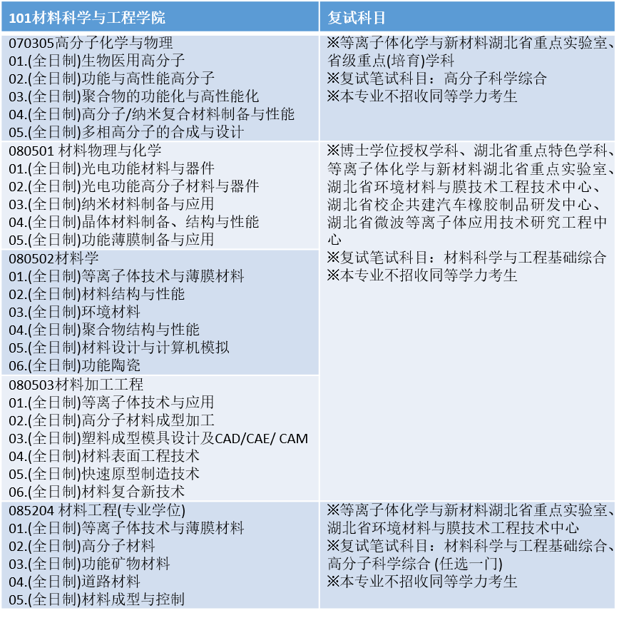硕士点:材料科学与工程一级学科,其中含材料学、材料加工工程、材料物理与化学和高分子化学与物理。