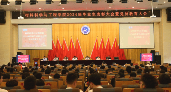 本网讯(通讯员 田明华)6月6日上午,材料科学与工程学院在四教多功能报告厅举行2024届毕业生表彰大会暨党员教育大会。学院院长江学良、党委副书记张琼、副院长熊礼威、赵洪阳,组织员余武明、黄克文,工会主席李鹏程,以及学院各系主任、班主任、导师代表和2024届全体在校毕业生参会。大会表彰毕业生中的优秀代表,毕业生向老师献花表达感谢,为毕业生党员上了离校前的最后一堂党课,师生依依惜别,互道祝福与珍重!
