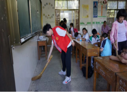 志愿者们热情地引导学生们进入教室,并与学生家长一同打扫卫生,共同营造一个干净整洁的学习环境。家长们纷纷向志愿者老师表达感激之情:“谢谢老师们能来这里支教,你们辛苦了!”“多亏了有你们这些老师,我们家长真的非常高兴!”……这些真挚的话语充满了对志愿者们的敬意和感激,也展现了下岩村小学师生家长们的团结和友爱。