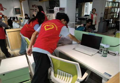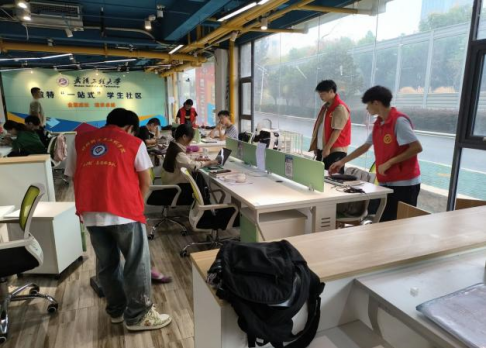 在这个秋意渐起的时节,志愿者们身着红马甲,如同秋日的暖阳照进了“微特”一站式学生活动中心。下午三点,志愿者们在青年之家集合,领取工具,分配任务,清洁工作有条不紊的展开了。志愿者们清理桌面垃圾、扫地拖地、擦柜子擦桌子、整理桌椅等等,热情高涨,不怕脏累。