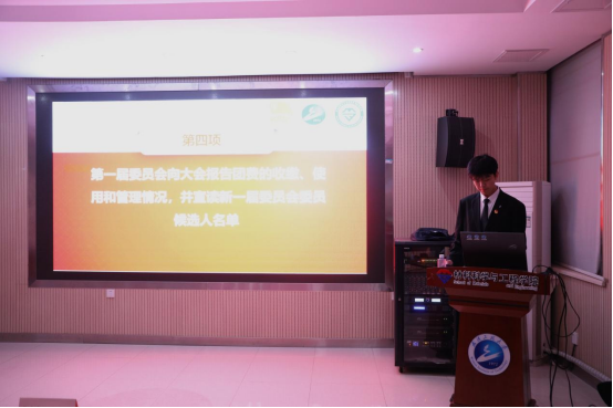 学院团委组织部负责人代表学院团委第一届委员会向大会报告团费的收缴、使用和管理情况,并宣读新一届团委委员候选人建议名单。大会代表审议通过第一届委员会所作的工作报告,新一届团委委员候选人建议名单以及监票人、计票人名单。