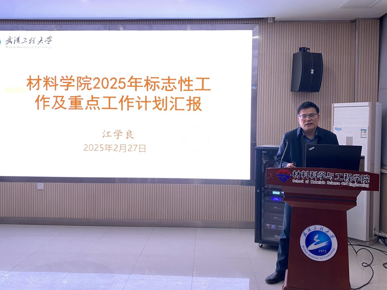 江学良对学院2024年目标任务完成情况和2025年工作计划进行了总结汇报,从人才引培、本科教育教学、研究生培养、科学研究、队伍建设等方面进行了全面分析。围绕学院下一步发展,他提出两点,一是直面挑战,明确努力方向。目前学院学科竞争力亟待提档升级,人才引育还需持续发力,科研创新仍需不断强化。二是凝心聚力,推动各项事业全面发展。聚焦高质量党建赋能学院高质量发展;聚焦人才强院,构筑“全员引才、靶向引才、项目引才”体系。进一步做好有组织的科研工作;加强科研团队建设,培育有显示度科研成果;聚焦立德树人,全面提升人才培养质量。他希望全院教职工上下一心,主动作为,保持时不我待的紧迫感和功成有我的责任感,共同助推学院各项工作开好局、起好步,取得新突破。