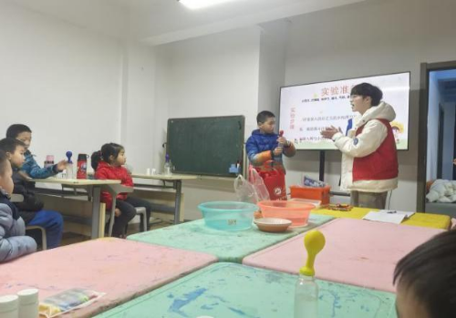活动现场,孩子们的脸上洋溢着纯真的笑容,眼中闪烁着对未知的渴望。志愿者们精心设计的“瓶子吹气球”“蜡烛吸水”“柠檬破气球”等实验,如同一把把神奇的钥匙,打开了孩子们通往科学世界的大门。这些实验不仅充满了趣味性,更蕴含着丰富的科学知识。志愿者们一边用生动形象的PPT讲解,一边耐心地指导孩子们操作实验。在志愿者的鼓励与帮助下,孩子们勇敢地尝试、积极探索,亲手体验科学的奇妙。每一次成功的实验都让他们欢呼雀跃,每一个神奇的现象都让他们对科学充满了敬畏与热爱。