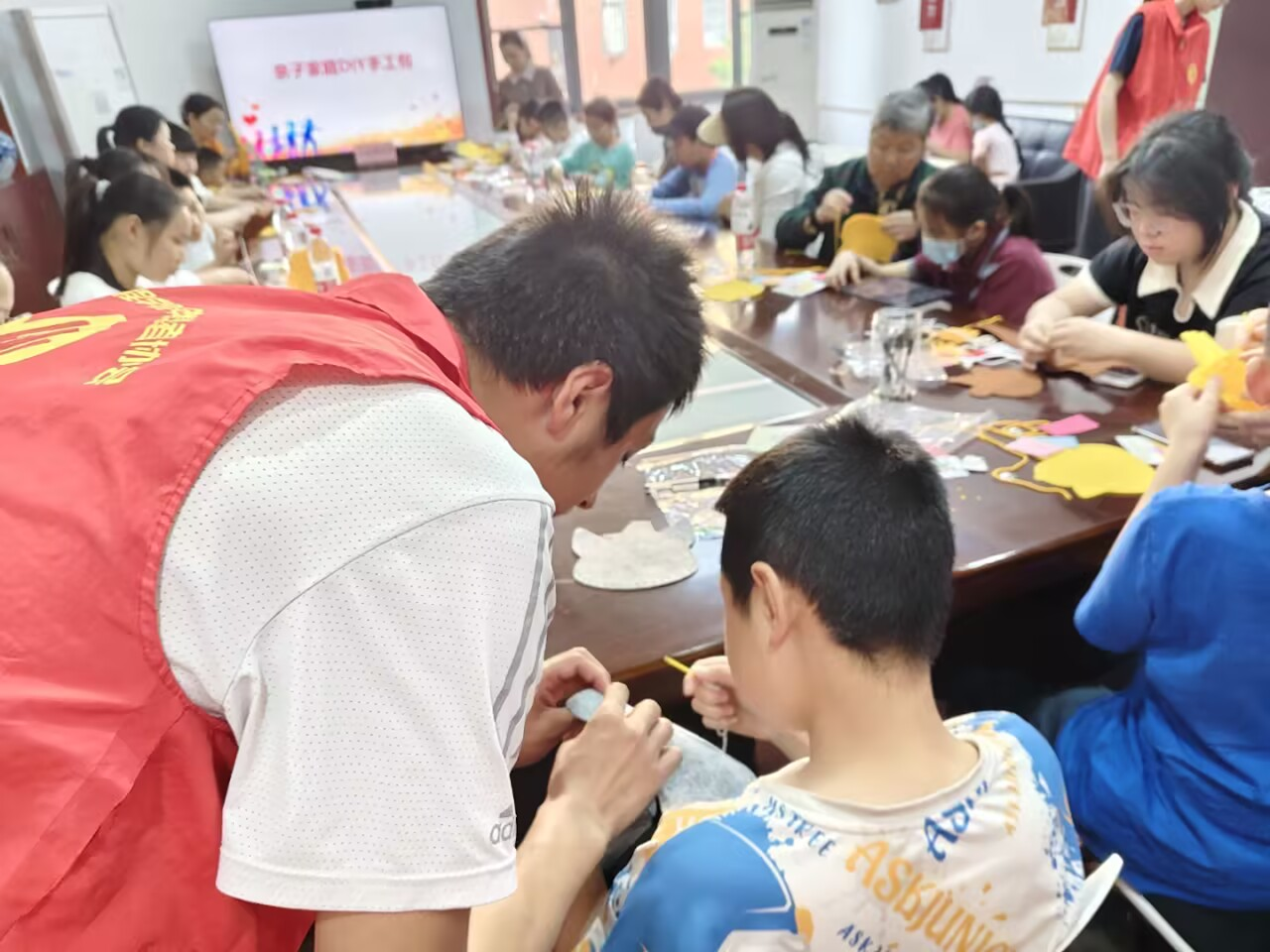 随后,DIY 手工环节将现场气氛推向高潮。志愿者为亲子家庭分发手工包工具,手把手指导制作。家长和孩子齐心协力,不一会儿,色彩缤纷的手工作品就完成了。这些作品不仅是创意的结晶,更凝聚着大家满满的爱。