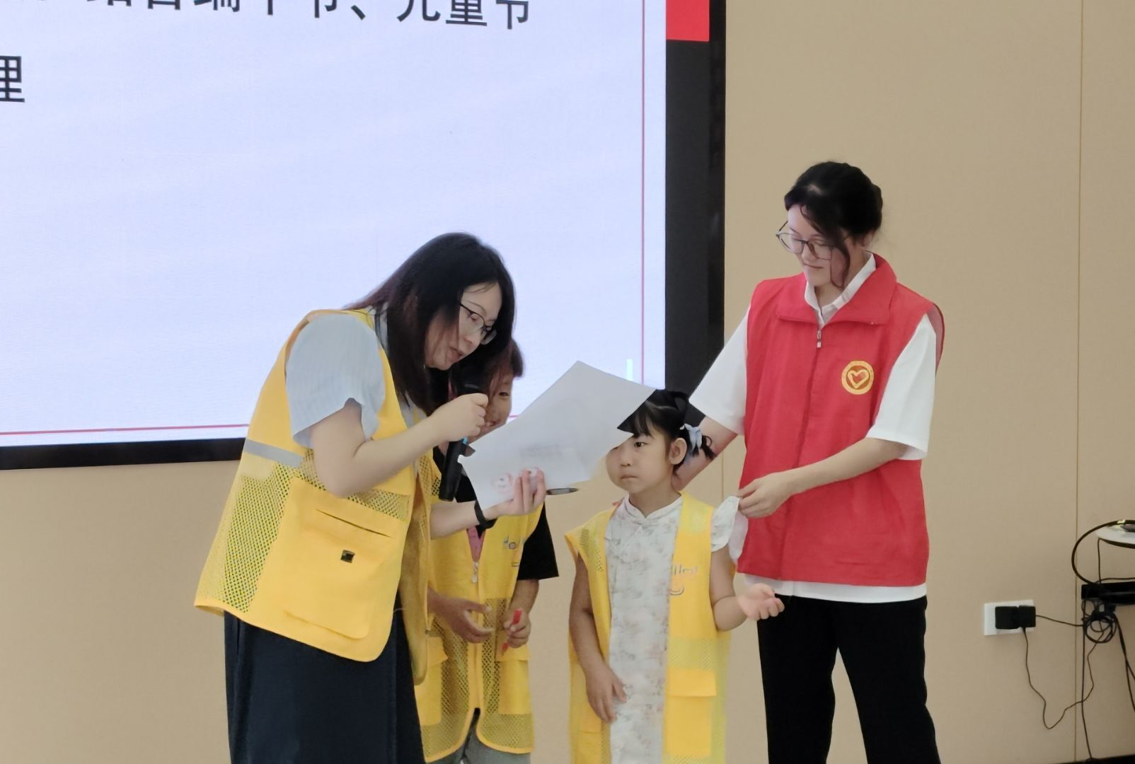在这场活动中,“小蓝钻” 志愿者们化身成为青少年成长路上的 “朋友”,他们用行动诠释奉献精神,从签到引导、物资分发,到保障活动各环节流畅运行;从带领小组设计集市方案,用 A4 纸与画笔碰撞出公益灵感,到协助青少年完成方案展示;从配合完成授旗签字仪式,到布置场地、协调流程、维护现场秩序,他们默默为活动的顺利进行保驾护航。