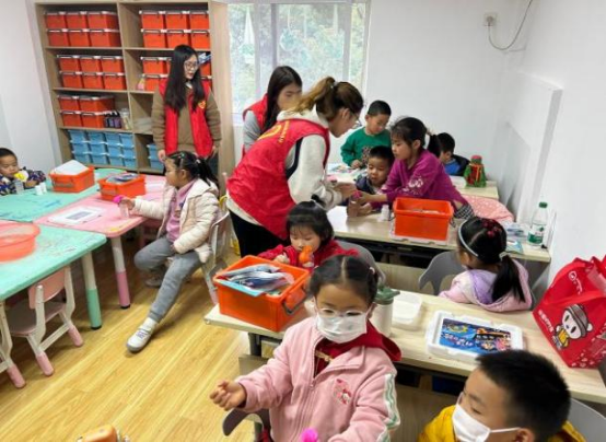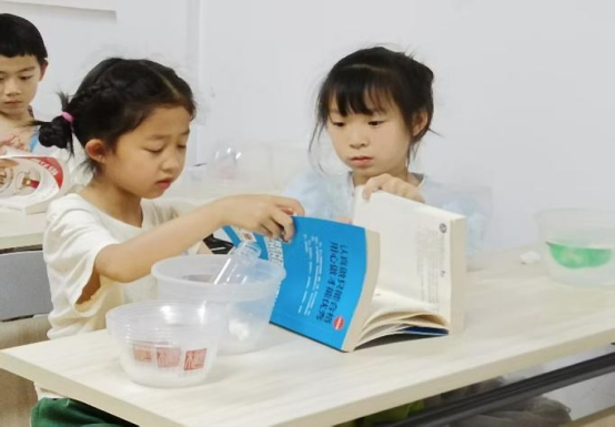 (小朋友们跟着志愿者老师一起做各种小实验)