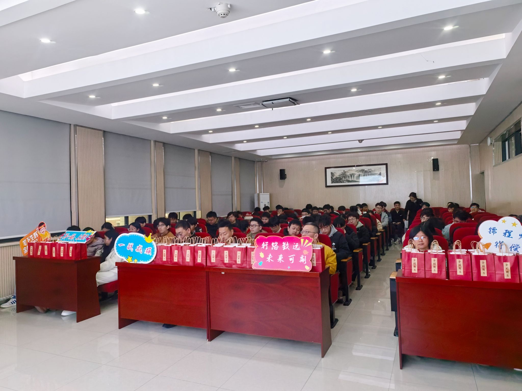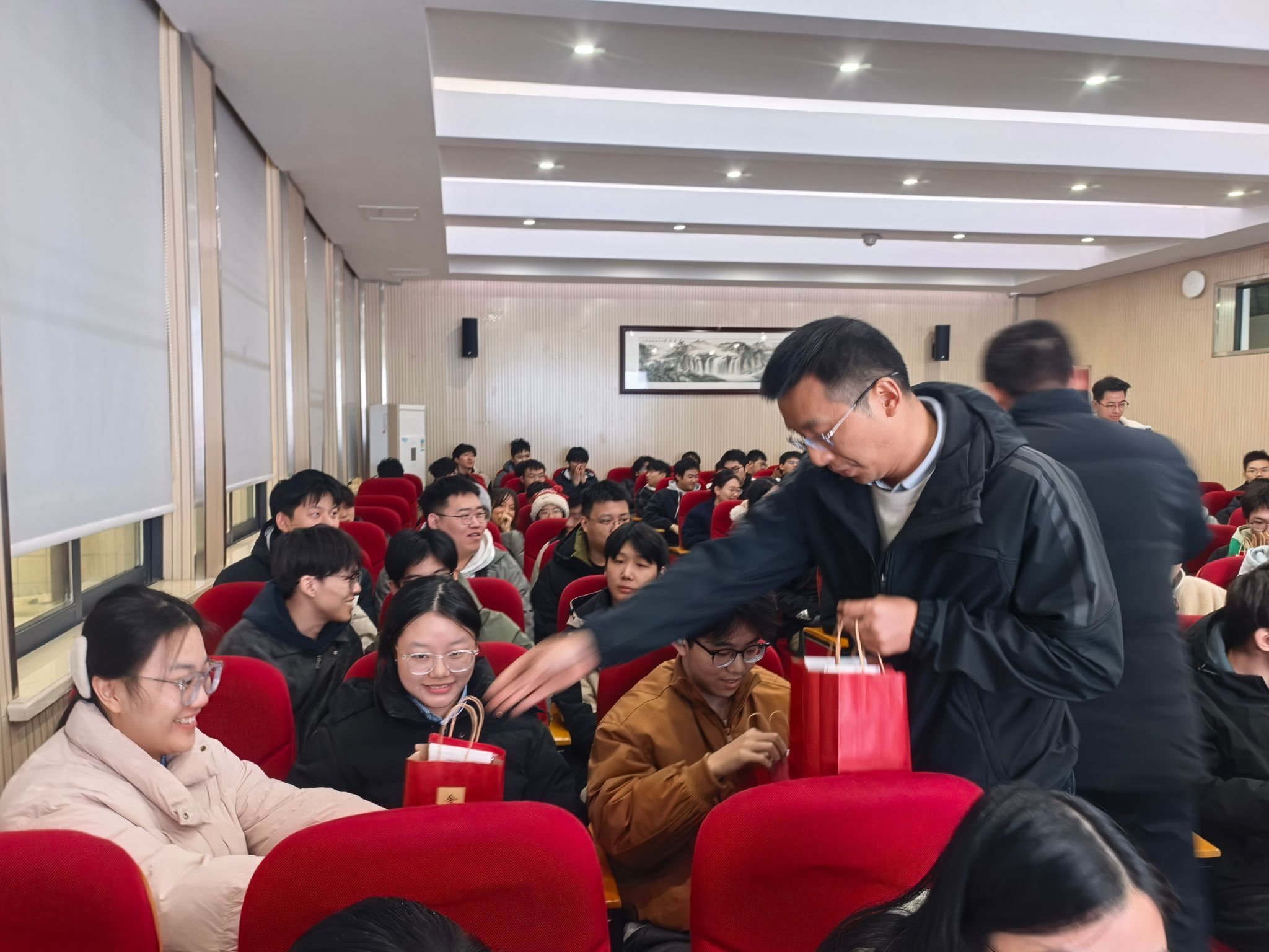 随后,老师们为正在备战的考研学子们送上一份份饱含温暖的“关怀大礼包”。礼包中包含寓意“笔下生辉”的实用文具,让人感觉“暖暖的,很安心”的暖宝宝贴和医用口罩,以及一份别具心意的“快乐肥宅水”,寄托了老师们对考研学子放松心情、一鼓作气的暖心鼓励。每一件大礼包都凝聚着学院对考研学子细致入微的关怀与美好祝愿,祝愿同学们金榜题名,前程似锦。