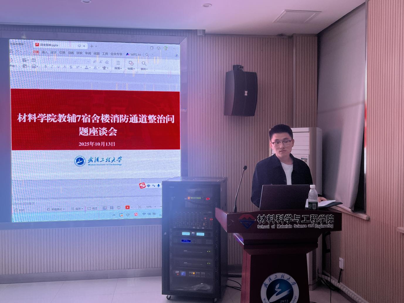 (通讯员:刘虎森)为响应学校号召,切实保障教辅七宿舍楼内女同学的生命财产安全,进一步规范宿舍消防通道管理,消除消防安全隐患,10月14日,材料学院在学院A326会议室组织召开教辅七宿舍楼消防通道安全整治的专题座谈会。学院党委副书记马科、各年级辅导员以及各年级住在教辅七宿舍楼的女同学代表共同参会,凝聚多方力量,为宿舍消防通道安全整治工作出谋划策。