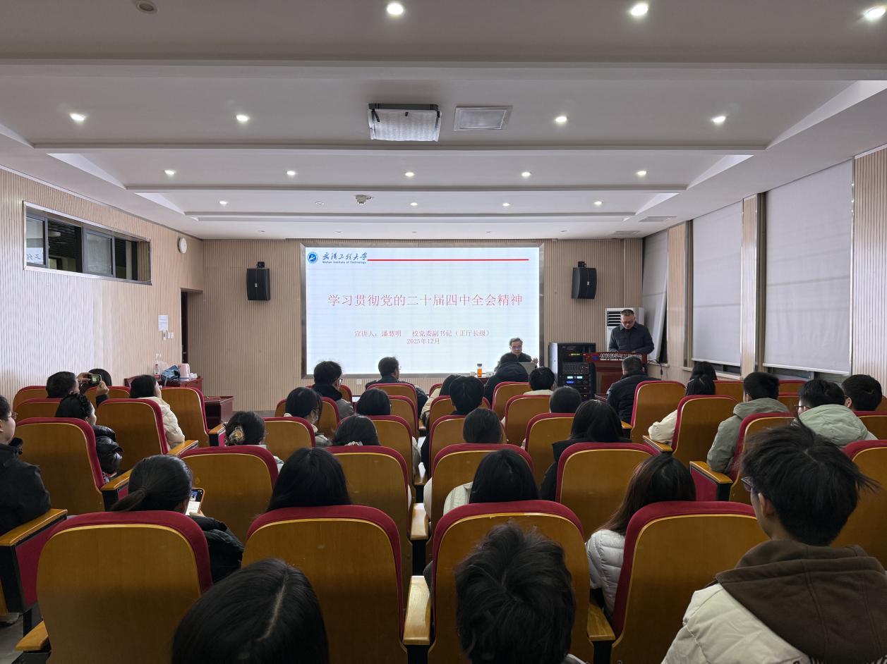(通讯员:刘虎森)为深入学习贯彻党的二十届四中全会精神,引导全院师生切实把思想和行动统一到党中央决策部署上来,12月26日上午,校党委副书记(正厅长级)潘慧明在材料学院A326会议室作党的二十届四中全会精神专题宣讲报告。校党委组织部常务副部长王涛、材料学院领导班子成员、各党支部书记、教工党员代表及学生党员代表参加宣讲会,会议由学院党委书记邓欢主持。
