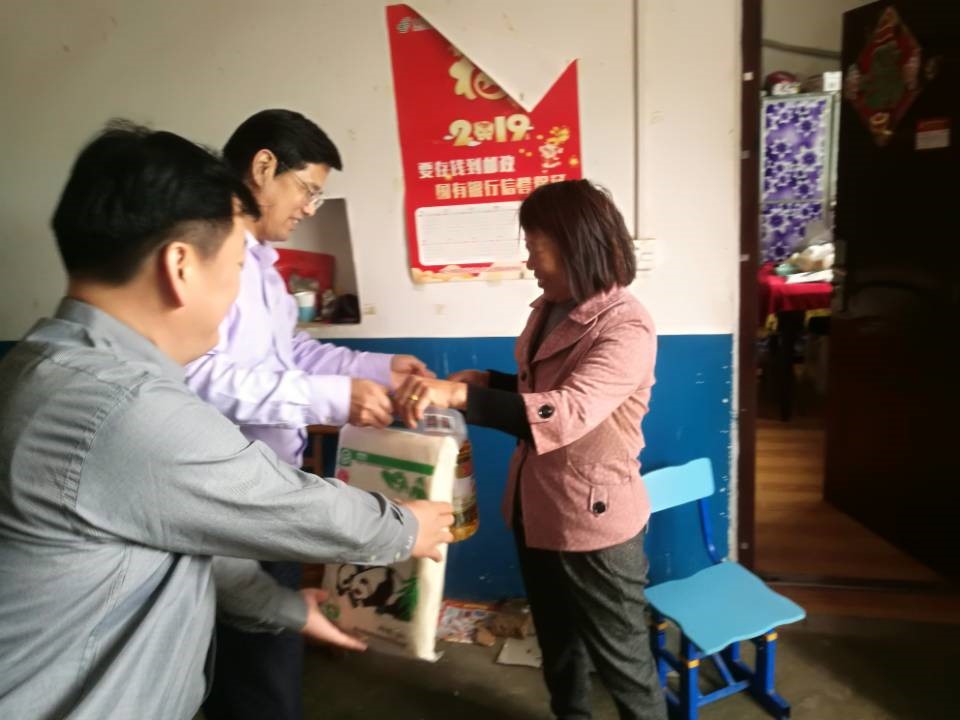 王存文带领学院党委常委副书记李国林、副书记肖平一行入户走访慰问了帮扶对象李君成、徐冬美等,送上大米和食用油等慰问品,详细询问了解了他们个人的家庭生产生活状况和实际困难,并鼓励他坚定脱贫信心,争取早日脱贫致富。