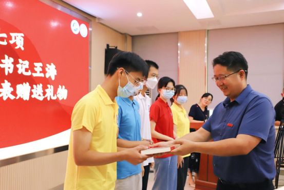 学院还为9月份生日的35名萌新精心策划了一场集体生日会,王涛为小寿星代表赠送了《习近平与大学生朋友们》一书,勉励同学们多读书多学习,珍惜韶光,踔厉奋发。现场老师为同学们送上了生日礼物,大家齐唱生日歌、许下生日愿望,会场洋溢着着欢乐喜庆,同学们都被这突然的惊喜感动。