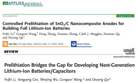 随着便携式电子产品和电动汽车等领域的日益增长,研发新一代高能量密度的锂离子电池(LIBs)/钠离子电池(SIBs)的需求更加迫切。李非非博士将上述独特的聚合物材料合成方法应用于新能源材料与器件研究中,聚合物材料设计与化学预锂化技术相结合能够有效弥补LIBs/SIBs初始容量损失,提高电池的初始库伦效率和循环稳定性,为发展和应用新一代高性能二次电池提供材料和技术支撑。相关成果发表在材料领域顶级期刊《ACS Energy Letters》(影响因子为23.99,中科院一区TOP)、《Energy Storage Materials》(影响因子为20.83,中科院一区TOP)、《Small methods》(影响因子为15.36,中科院一区TOP)和《ACS Applied Materials & Interfaces》(影响因子为10.38,中科院一区TOP)上。李非非博士为这一系列论文的第一作者,新能源材料与器件系2019/2020/2021级本科生曹杨洋、吴文静、彭欣怡、余小凡等参与了相关研究工作。