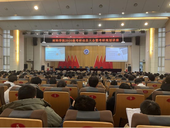 考研动员大会暨考研规划讲座是材料学院学风建设的传统工作,有利于提升考研学生尽早规划与自主学习思考的能力,根据学院统计,2020级意向考研的学子共计404人,占年级总人数的90%,祝愿同学们能更加坚定考研目标并为之不懈努力,勇攀人生更高峰。(审稿:王涛)