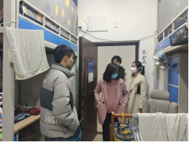 本网讯(通讯员 安佰谦)为进一步提升寒假期间学生安全意识、文明素养,不断优化育人环境,维护校园和谐稳定,材料学院党委副书记张琼以及各年级辅导员深入学生寝室,排查宿舍安全隐患,营造良好和谐的宿舍环境,返乡归途中,要“开心”更要“安心”。