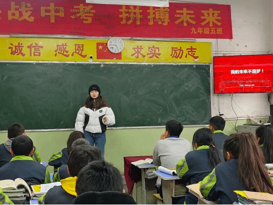 “种一颗树最好的时间是十年前,其次是现在。” 在同学们期待的目光下,团干热孜瓦古力结合自身求学和工作经历,通过图片和视频向同学们展示了缤纷多彩的大学社团和活动,辩论赛、迎新晚会、彩虹跑……使得同学们目不暇接,切身体会大学丰富多彩的第二课堂。“同学们想过上这种多姿多彩的生活吗?”“想!”台下同学齐声回答。并且她围绕上学的意义、高中的重要性、大学的定义、专业选择等五个方面层层递进展开宣讲,使初三学子们对未来的学习生活充满希望和期待,让大学梦在同学们心中生根发芽,激励他们不断努力,追求更高的目标。