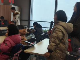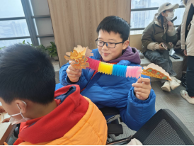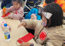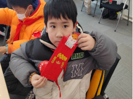 每天上午,专业老师会给孩子们上课,吕天诺和黄诗怡主要负责协助小朋友们完成手工作品。“这里这么折一下,是不是看起来就像个红包啦。”在龙年红包DIY课堂上,黄诗怡耐心帮小朋友完成最后的封口,看到小朋友们兴奋地展示着自己的作品,她也感受到满满的成就感。“老师老师,龙头怎么画呀”“来啦”吕天诺手把手教小黄画出一个形象、可爱的龙头,刚收尾,小李就迫不及待把他拉到自己座位上帮忙画龙尾。吕天诺笑称,“从来没有这么被需要过,这感觉真好”。