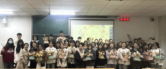 杨雪给同学们介绍了插花的起源和历史,用大量图片、例子讲解了东西方在插花花材、花器、造型方面的差异,引导同学们从插花文化这一个小切口树立文化自信。