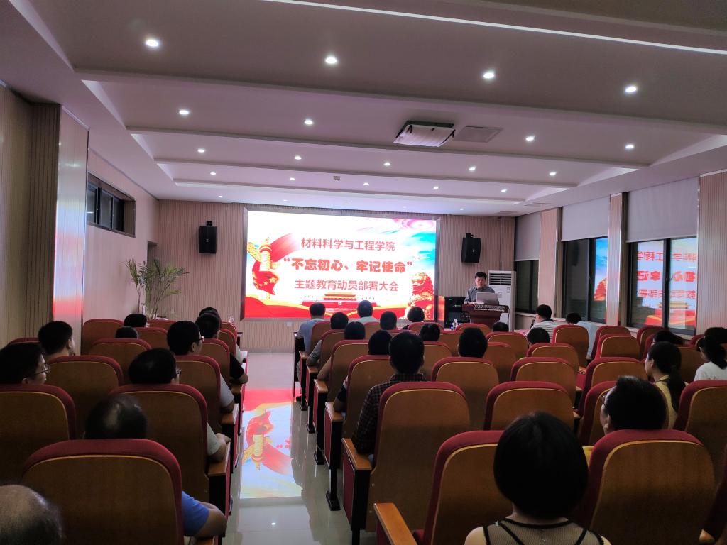 本网讯(通讯员 柯贤忠)9月27日上午,材料科学与工程学院在材料楼A326学术报告厅组织召开了“不忘初心,牢记使命”主题教育动员部署大会。校主题教育第三指导组组长、校党委副书记郑丹凤,校党委宣传部部长路海华,党政办公室主任科员邓欢,材料学院院长江学良、副书记肖平、副院长王传新、副院长李亮、学院全体教师党员、学生党支部书记参加了会议,会议由学院党委书记李国林主持。