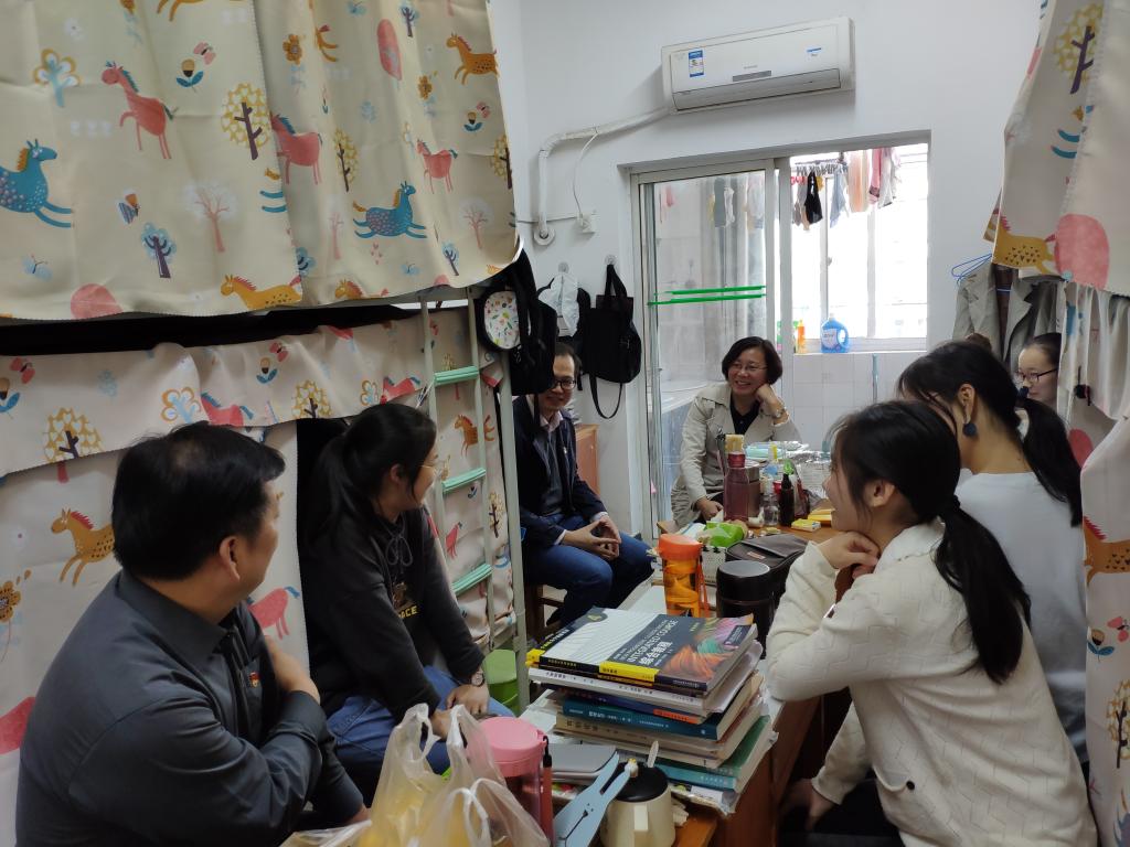 郑书记还与2018级创新班江悦同学从家庭、学习、生活等方面进行了深入交谈,并来到所在宿舍看望和慰问了宿舍的全体同学。郑书记与大家交换了联系方式,并认真听取了同学们的家庭、学习和生活情况。她指出,近年来学校在不断改善同学们的学习生活条件,希望大家珍惜四年的大学生活,增强知校、爱校、荣校意识。郑书记最后勉励同学们立志高远、脚踏实地,在互动互学中增长才干,在互帮互助中共同进步,争创校级文明宿舍。