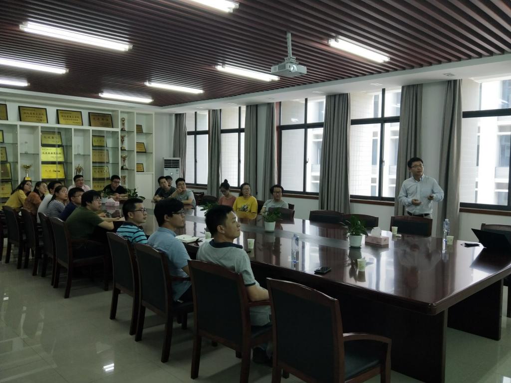 叶博士首先对有机/聚合物太阳电池的发展过程和工作原理进行了简单的介绍,然后从有机太阳能电池活性层形貌调控入手,深入剖析了有机光伏材料的分子间相互作用、聚集态结构与器件性能三者之间的相互关系对有机太阳能电池器件效率的影响,详细介绍了使用二次离子质谱和软X射线扫描透射显微镜两种方法探究非晶聚合物光伏体系的热力学相图以及相互作用参数的温度依赖性,并提出了有机太阳能电池中相互作用参数-相容性-器件性能三者之间的定量关系模型,最后介绍了绿色溶剂刮涂的非富勒烯有机太阳能电池的最新进展。整场报告深入浅出,气氛活跃,在场师生与叶博士进行了及积极的交流和探讨,受益匪浅。