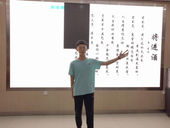 参赛选手们通过对中国古现代诗文的精心挑选和深入研读,准备了自己的诵读作品。在比赛现场,他们用激昂且独特的声音,展现了经典文学的魅力。选手们分别诵读《青春中国》《将进酒》《我能有什么坏心思呢?》《青春》《不析》等作品,通过他们的声音,在座的师生仿佛穿越时空,感受到了中华文人的智慧和情感。