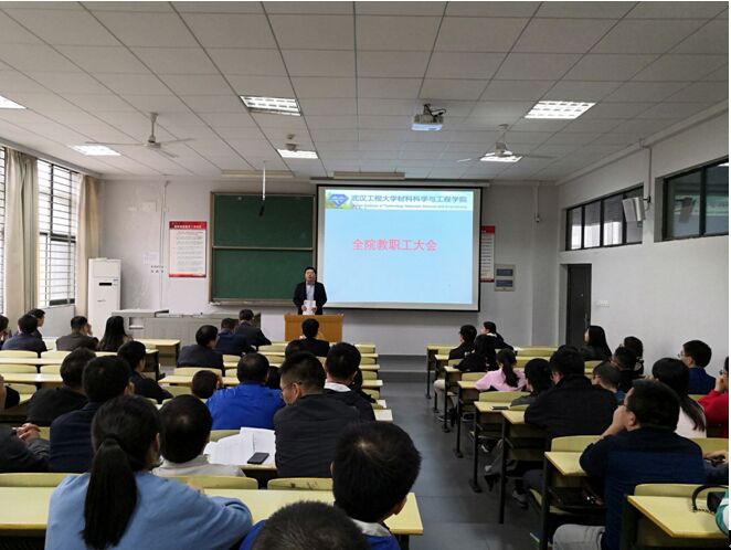 (通讯员:屈丹)10月25日下午,材料科学与工程学院在学校四教楼L4103教室召开了全体教职工大会。学院党委书记、院长刘治田主持,学院全体教职工参加了会议。