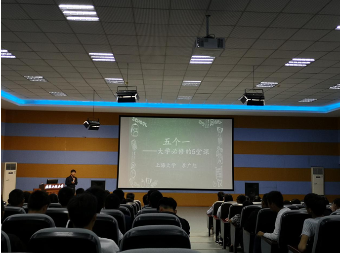 (通讯员 高梦雅)10月8日19点,材料学院在文科楼313报告厅举办了“五个一——大学必修的五堂课”讲座。此次讲座邀请了上海大学文学博士、上海华文创意写作中心讲师李广旭作为嘉宾主讲人,此次讲座由材料学院班主任陈俊主持,2018级辅导员高梦雅和学院2018级全体新生参加了此次讲座。