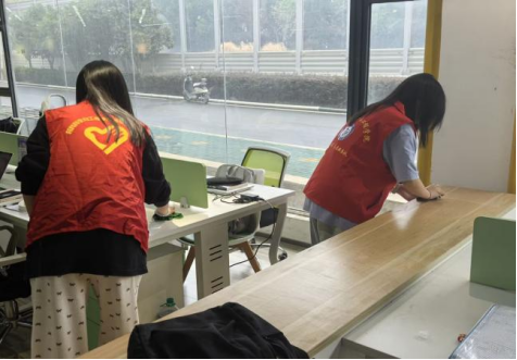 在这个秋意渐起的时节,志愿者们身着红马甲,如同秋日的暖阳照进了“微特”一站式学生活动中心。下午三点,志愿者们在青年之家集合,领取工具,分配任务,清洁工作有条不紊的展开了。志愿者们清理桌面垃圾、扫地拖地、擦柜子擦桌子、整理桌椅等等,热情高涨,不怕脏累。