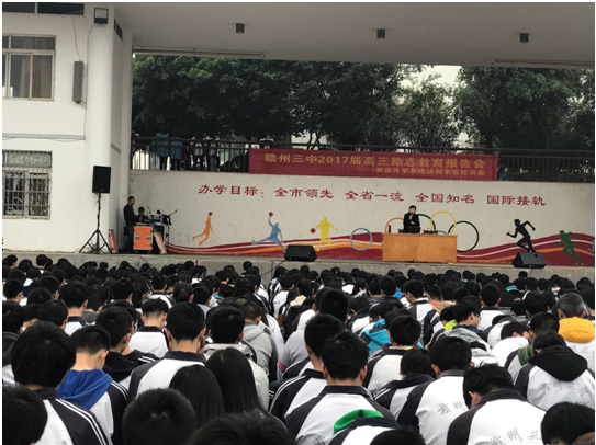 (通讯员 杜娟)3月31日,bw必威西汉姆联官方网站赴江西省赣州市赣州三中开展招生宣传工作,为在校1000余名高三师生进行了励志教育报告会。邀请了学校心理健康教育中心喻瑶老师担任主讲教师,bw必威西汉姆联官方网站学生工作办公室杜娟老师全程参与此次招生宣传工作。