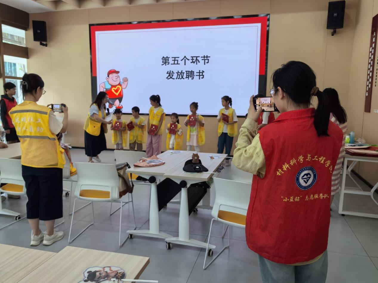 在这场活动中,“小蓝钻” 志愿者们化身成为青少年成长路上的 “朋友”,他们用行动诠释奉献精神,从签到引导、物资分发,到保障活动各环节流畅运行;从带领小组设计集市方案,用 A4 纸与画笔碰撞出公益灵感,到协助青少年完成方案展示;从配合完成授旗签字仪式,到布置场地、协调流程、维护现场秩序,他们默默为活动的顺利进行保驾护航。