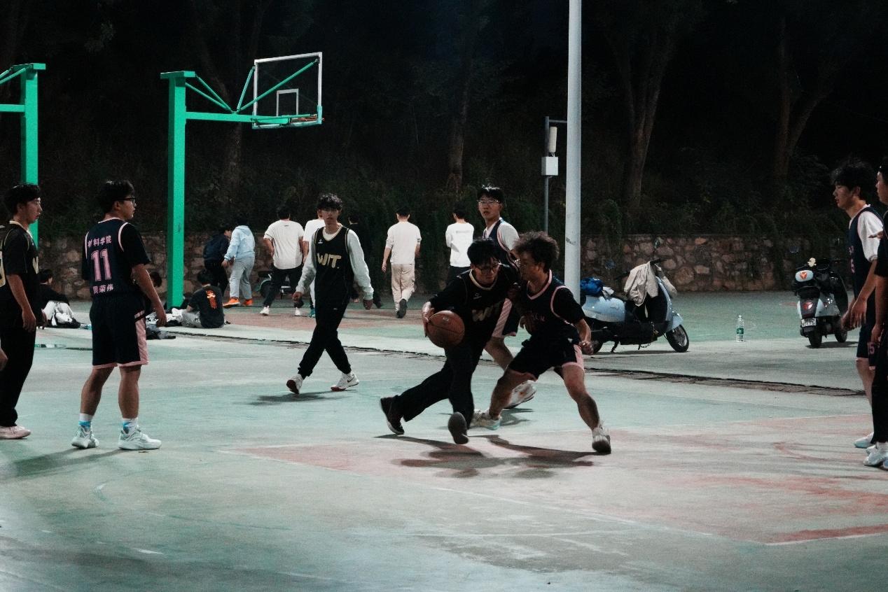 球场上,球员们全情投入、奋勇拼搏,展现出高超的篮球技艺与默契无间的团队配合。那一次次精准无误的投篮、一个个精妙绝伦的传球,赢得了场边观众的阵阵掌声与声声喝彩。尽管天色逐渐昏暗,但材料学院的新生们依旧绽放着不屈的光芒。他们用汗水诠释青春的活力,以拼搏书写团结的篇章,充分彰显了材料学子昂扬向上的精神风貌。