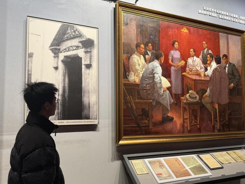 跟随讲解,实践团成员步入“开天辟地”展厅。从“南陈北李,相约建党”的历史画卷,到各地早期党组织分布图,详实的史料让成员深切体会到建党前夕的曲折探索与思想准备。行至“红船起航”展区,按比例复原的红船模型前,成员们静静聆听中共一大代表们辗转南湖、宣告中国共产党诞生的故事。正是这艘小小的红船,承载起民族复兴的初心,划破旧中国的漫漫长夜,点亮了亿万人民心中的希望之光。