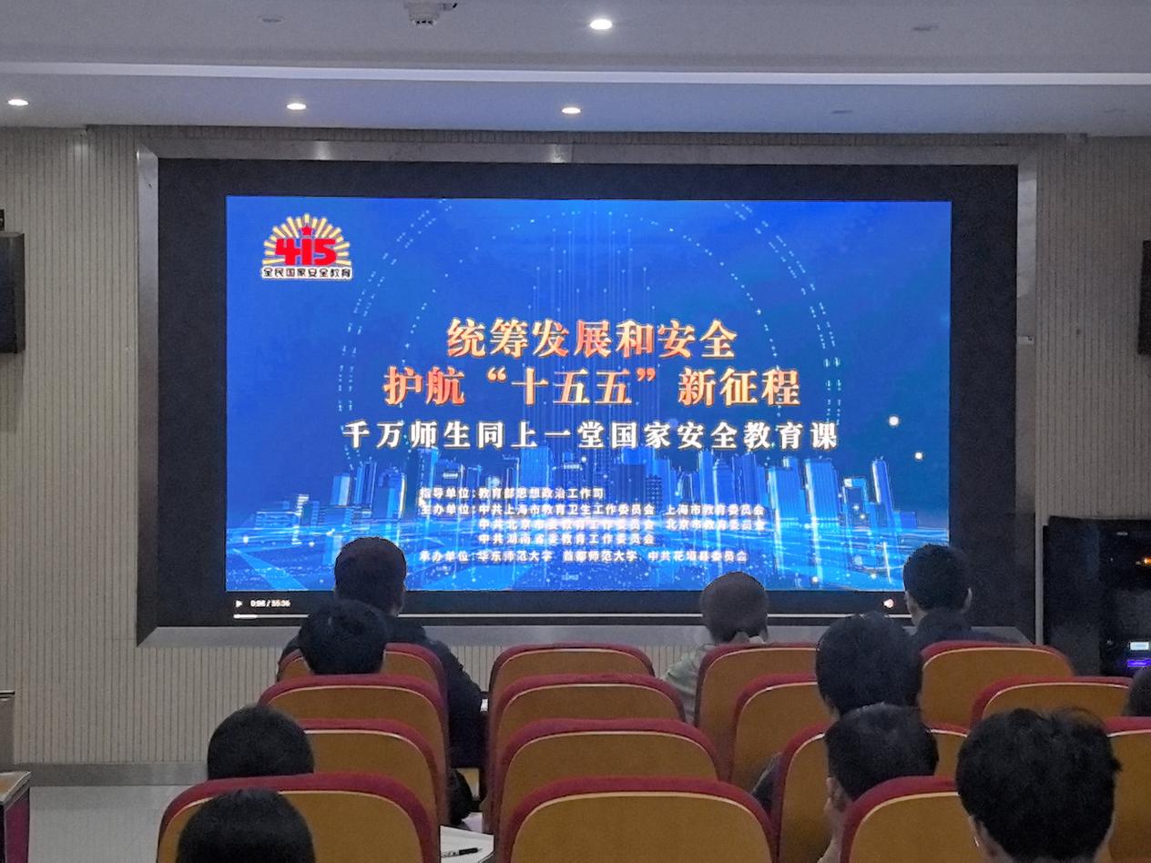 (通讯员:刘虎森)4月15日是第十一个全民国家安全教育日,为深入学习贯彻总体国家安全观,切实增强师生国家安全意识与防范意识,材料学院于A326会议室组织观看“千万师生同上一堂国家安全教育课”直播活动。学院教师代表、学生党员、入党积极分子及发展对象代表参加本次活动。