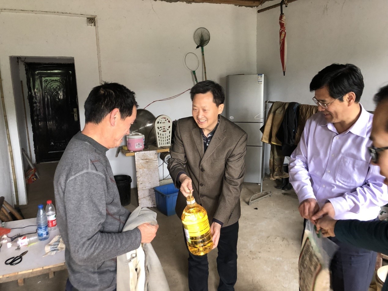 王存文带领学院党委常委副书记李国林、副书记肖平一行入户走访慰问了帮扶对象李君成、徐冬美等,送上大米和食用油等慰问品,详细询问了解了他们个人的家庭生产生活状况和实际困难,并鼓励他坚定脱贫信心,争取早日脱贫致富。