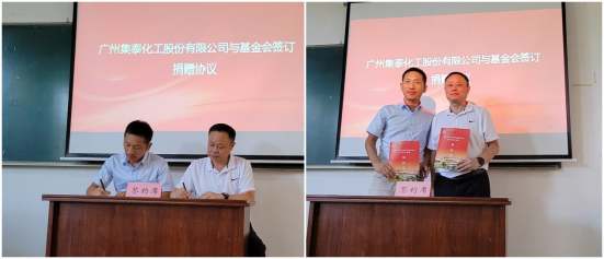 (通讯员田明华)9月15日下午,广州集泰化工股份有限公司向武汉工程大学捐赠签约仪式在流芳校区一教L1101室举行。广州集泰化工股份有限公司市场部华中大区经理张文华等企业来宾8人,武汉工程大学校友工作处处长邓新洲、教育发展基金会专职副秘书长毕灵敏,材料学院党委书记王涛,院长江学良,副院长熊礼威、姚军龙出席签约仪式,材料学院本科生及研究生代表参加了签约仪式,仪式由材料学院党委副书记张琼主持。
