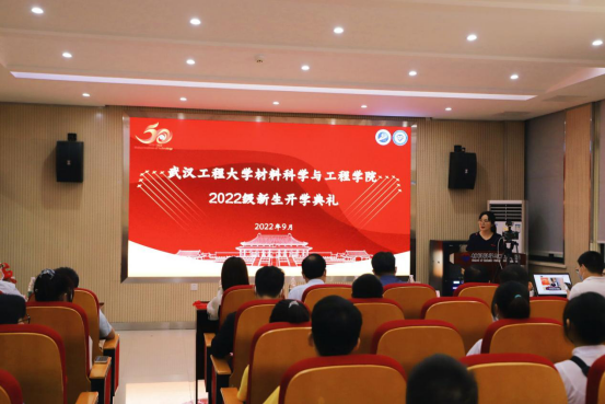 (通讯员 张茜)9月7日下午,材料科学与工程学院2022级新生开学典礼在材料楼326报告厅成功举行。材料学院党委书记王涛、院长江学良、副书记张琼、工会主席李鹏程、导师代表黄志良、青年教师代表杨欢、各系主任、学工办、班主任代表以及35名2022级新生代表共计50人参加线下仪式,547名新生及家长通过B站同步观看直播。典礼由张琼主持。