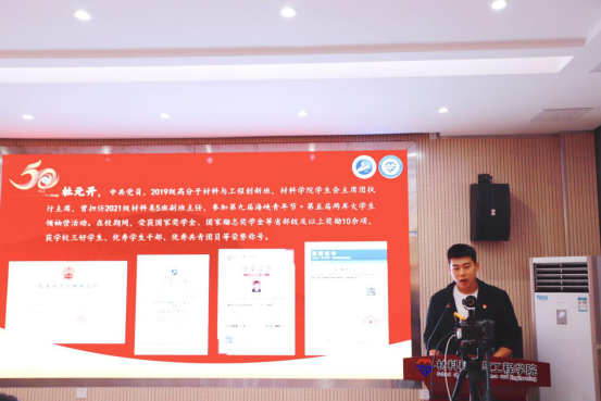 2019级高材创新班、材料学院学生会主席团成员杜元开作为在校生代表分享自己的感悟,他认为学习不是“唯一”,但它是“第一”,学习是学生的本职工作,无限自由源自无限自律,希望学弟学妹们珍惜时光,学会自省,学会自律。热爱你所选择的,选择你所热爱的。