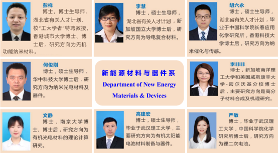 bw必威西汉姆联官方网站新能源材料与器件系成立于2019年,已组建8人的青年教师团队,全部具有博士学位,4人具有海外留学经历,4人次入选湖北省组织部/教育厅有关人才计划。依托bw必威西汉姆联官方网站材料科学与工程学院,立足于化学、材料学、工程学、生物学等多学科交叉领域,在光能利用与减污降碳领域科技创新方面已取得系列成果。承担国家级科研项目8项(包括1项国家重点研发计划“变革性技术”课题)、湖北省重点研发计划和湖北省自然科学基金项目7项;团队成员以第一/通讯作者在Natl. Sci. Rev.(中国科技期刊卓越行动计划领军期刊)、J. Energy Chem.(中国科技期刊卓越行动计划重点期刊)、J. Mater. Sci. Technol.(中国科技期刊卓越行动计划重点期刊)、CCS Chem.(中国化学会旗舰新刊)、Coordin. Chem. Rev.、Adv. Mater.、Adv. Funct. Mater.、Angew. Chem. Int. Ed.、ACS Energy Lett.、ACS Nano、Appl. Catal. B、Nano Energy等中科院一区TOP期刊发表论文60余篇,其中IF >10的40余篇、IF >20的10余篇、ESI热点论文1篇、高被引论文7篇;承担教研项目1项,课程思政示范课程建设项目1项,发表教研论文3篇;2位老师曾获得教学评教全校第一名。