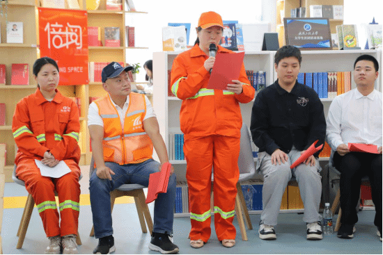 以书会友,以文沁心,环卫工人与大学生朋友们互赠书礼,共享读书之乐。